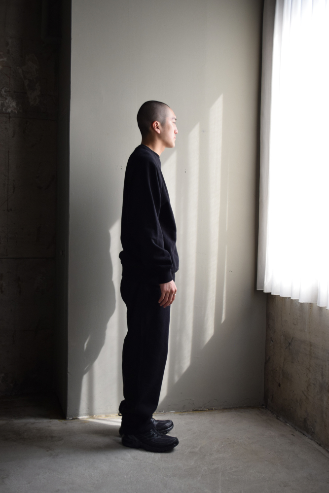 COMOLI (コモリ) コットン裏毛 クルーネック [BLACK]