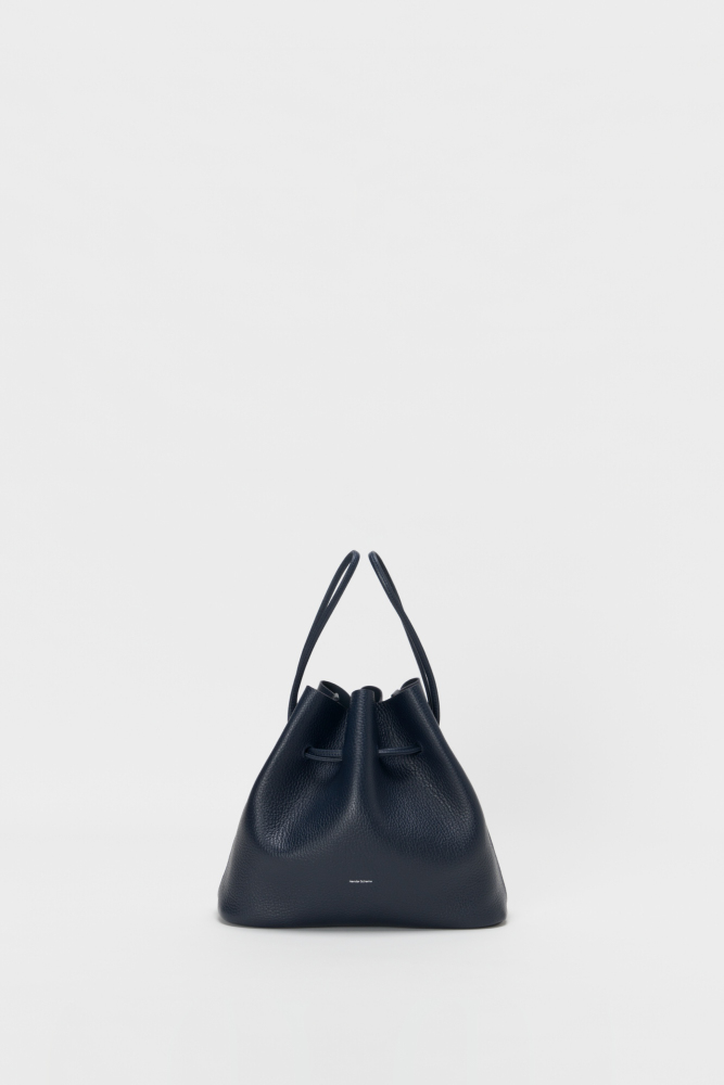 開口部の2本の紐は、両サイドから引くと巾着型に、中央から引くとトートのように持つことができ、用途や気分に応じて2通りの持ち方が楽しめます。