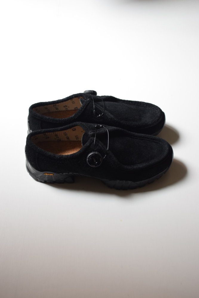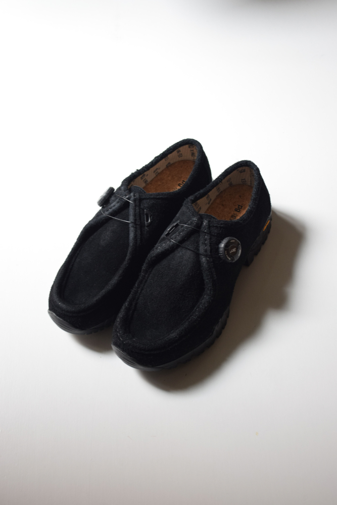 ワラビーシューズの持つ渋さやクラシックなフォルムを残しながら、着脱が容易なフリーロックシステムやボリュームのあるソールユニットなど、現代のテクノロジーを詰め込んだ近未来的なディテールが新鮮な印象の一足。