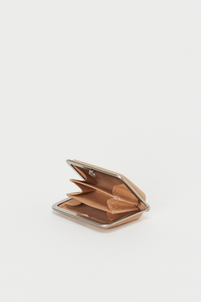 イタリア タンニン鞣しのカウレザーを使用し、形成で立体的に加工したがま口財布です。