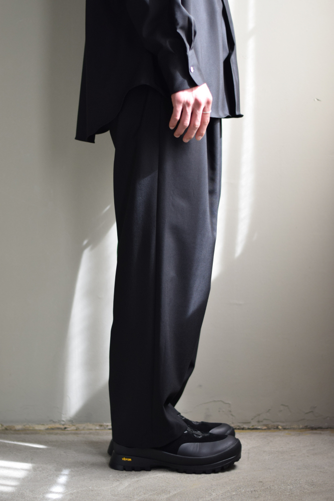 MARKAWARE (マーカウェア) ORGANIC WOOL 2/80 TROPICAL DOUBLE PLEATED EASY TROUSERS [BLACK]