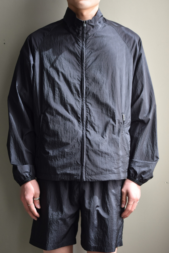 撥水加工された薄手のナイロンを使用したトレーニングジャケット。