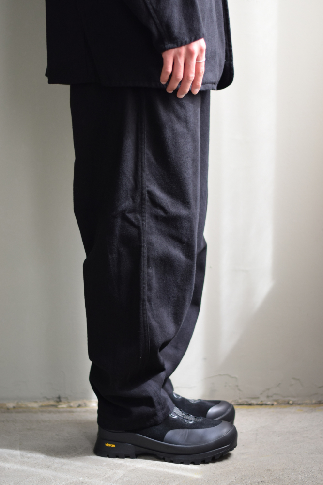 COMOLI (コモリ) ブラックドリル テーパードパンツ [BLACK]