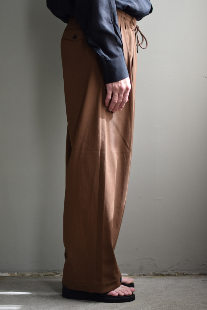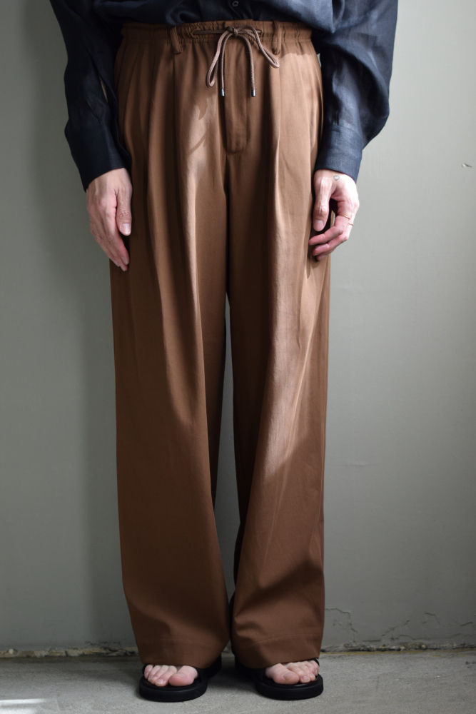 MARKAWARE (マーカウェア) Organic Cotton Voile Yarn Twill Triple Pleated Easy Trousers [BURNT UMBER]