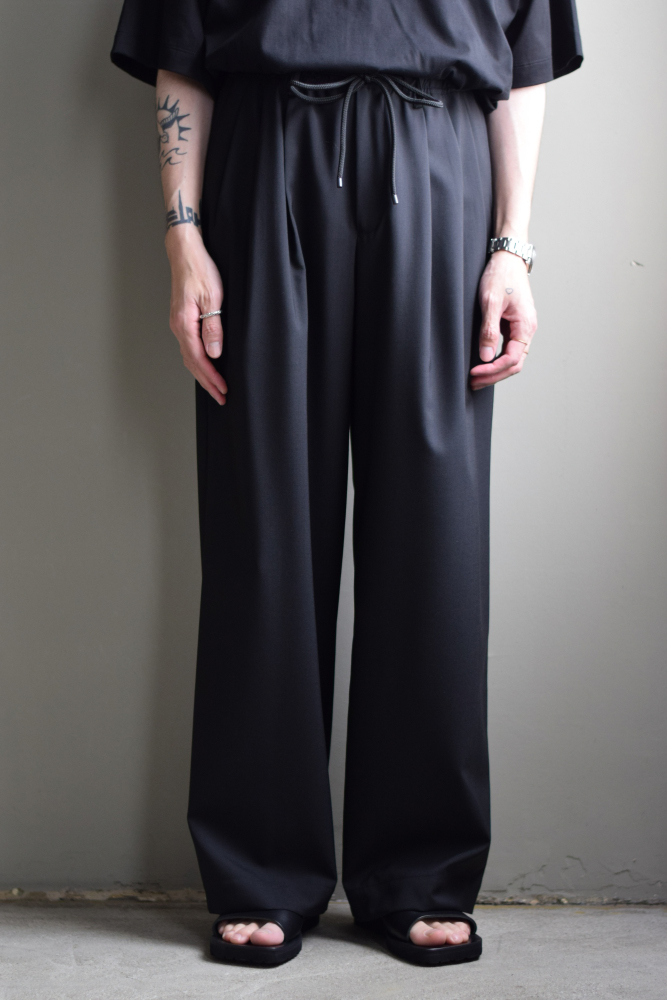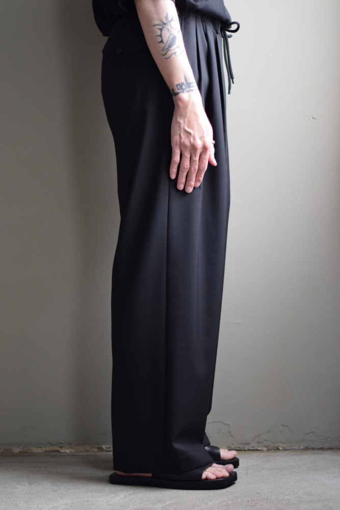 MARKAWARE (マーカウェア) Organic Wool 2/80 Tropical Triple Pleated Easy Trousers [BLACK]