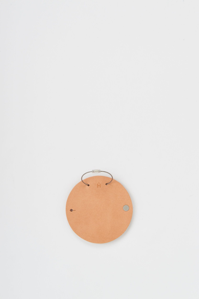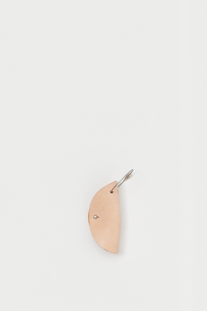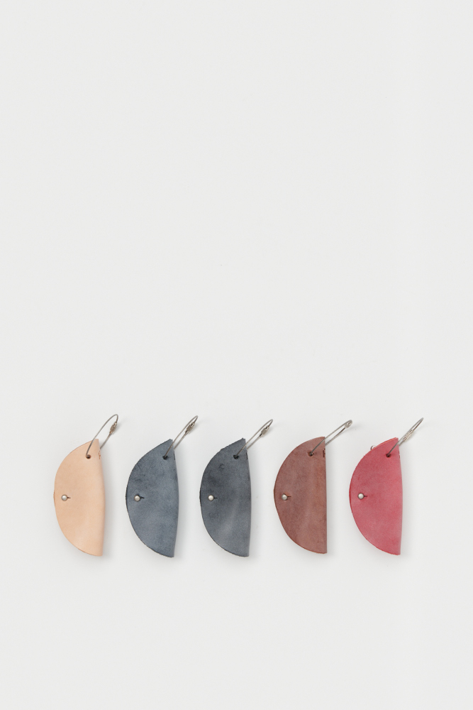 丸く裁断した2.2mm厚の革の中に鍵を入れてくるんでギボシでとめるタイプのキーホルダーです。